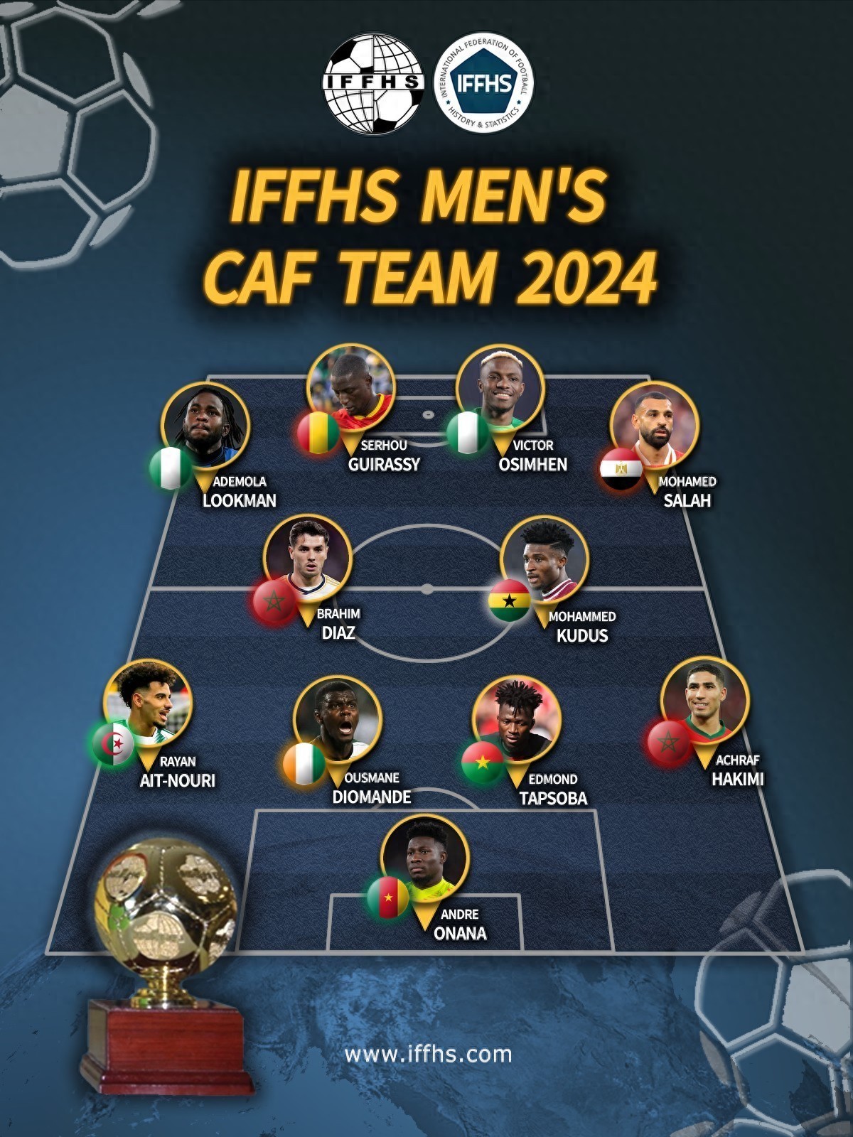 北京时间1月16日,IFFHS(国际足球历史和统计联合会)评选出了2024年度非足联最佳阵容。
